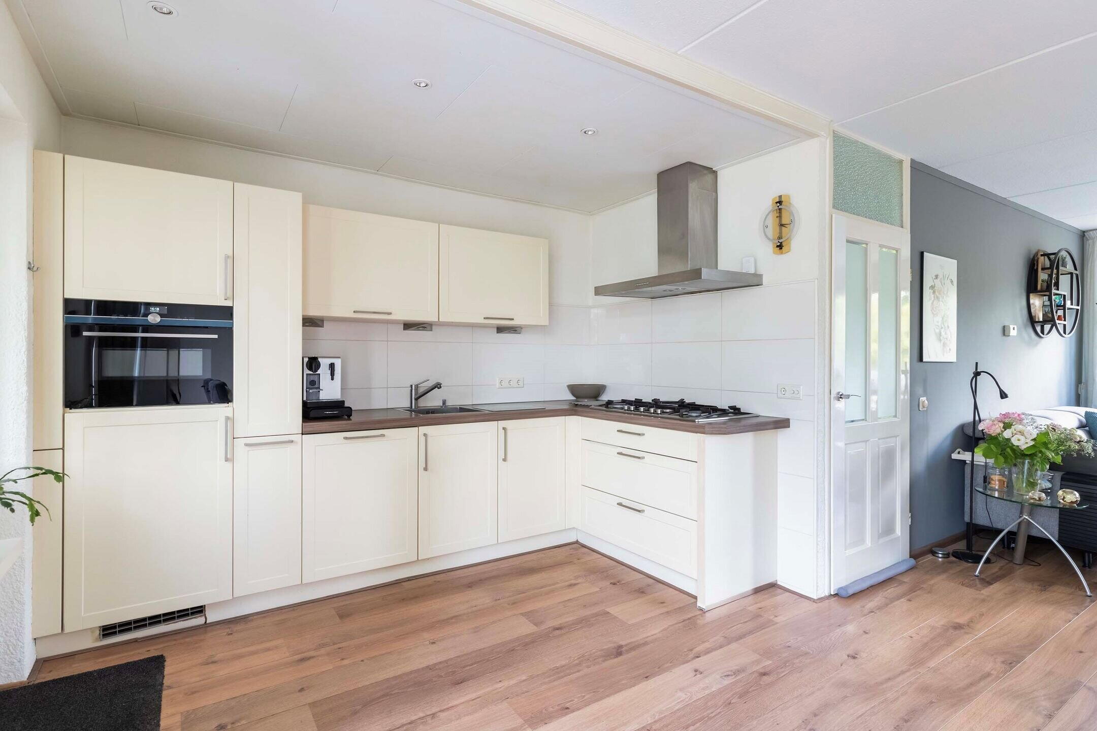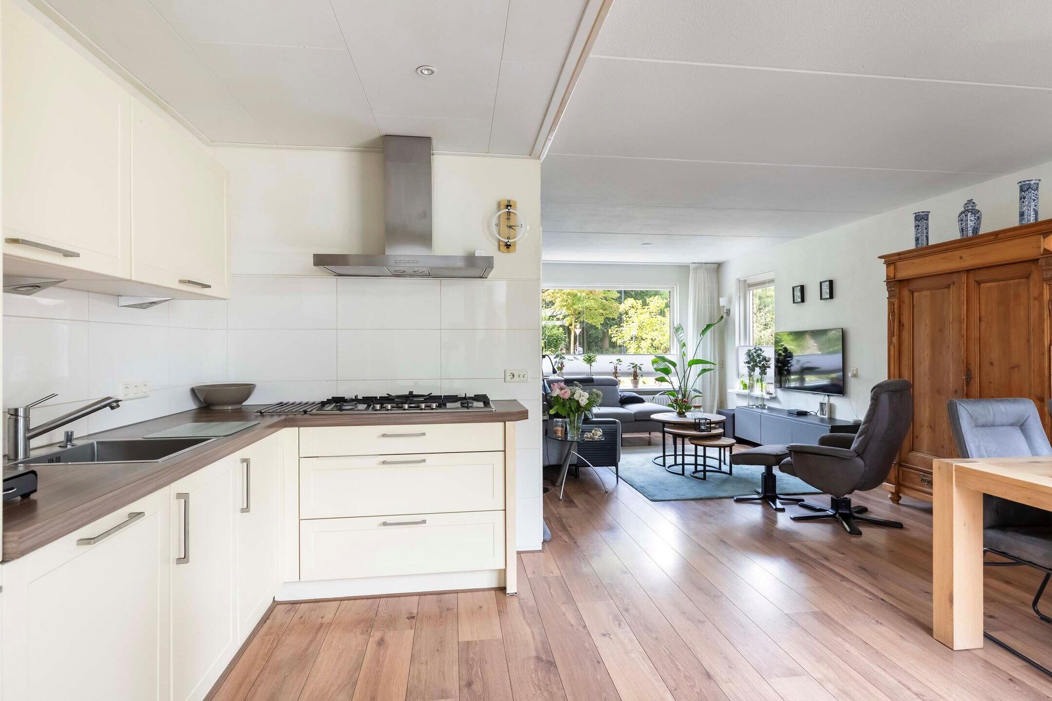 Entree, hal met meterkast, toilet en trapopgang. De lichte en ruime woonkamer heeft grote ramen en biedt een prettig uitzicht op de tuin. Aan de achterzijde bevindt zich de royale serre, die zorgt voor extra leefruimte en in directe verbinding staat met de achtertuin. De open keuken is praktisch ingedeeld en voorzien van voldoende kastruimte.