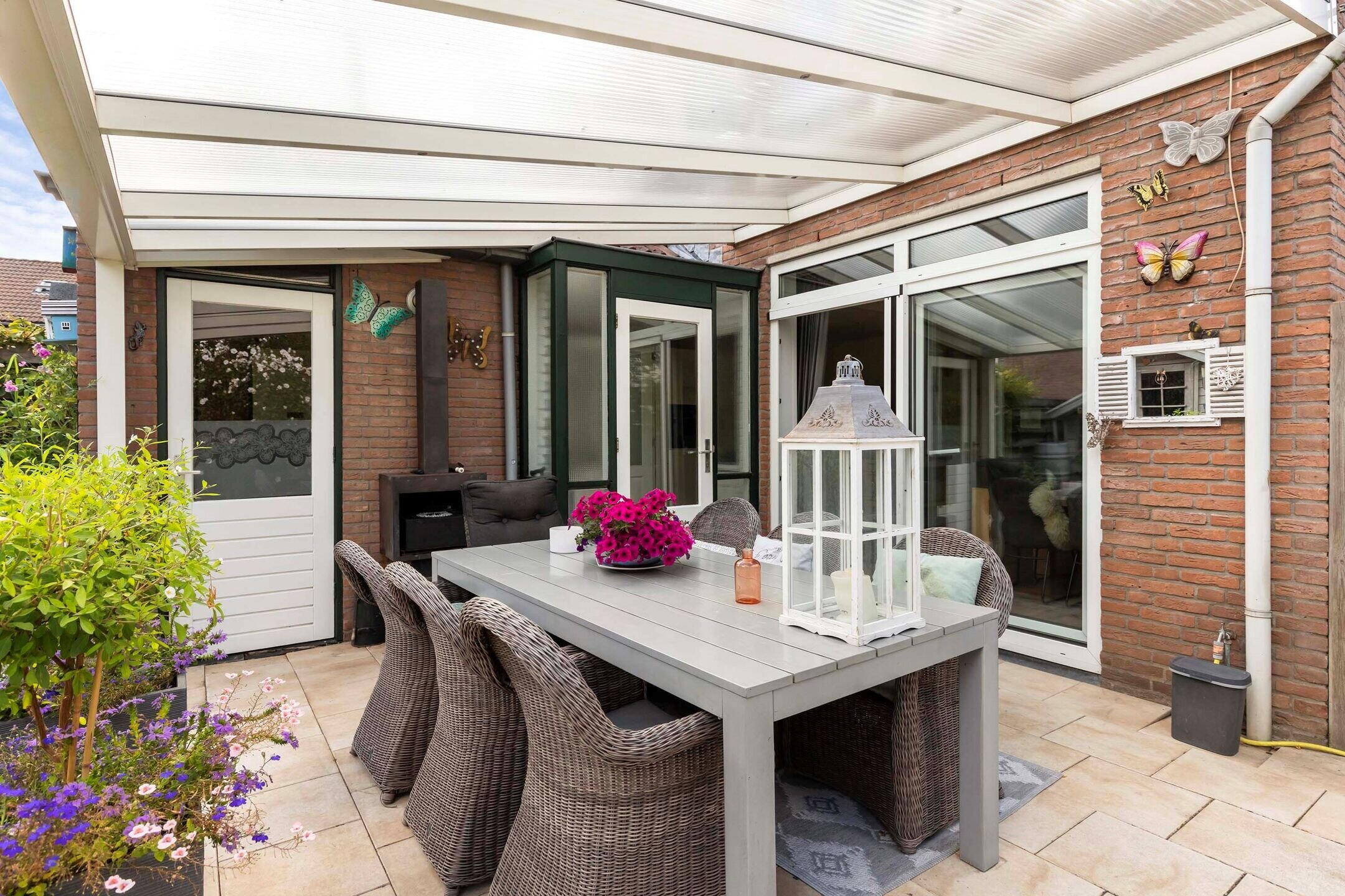 De woning beschikt over een verzorgde achtertuin met achterom en een ruime serre waar je het hele jaar door van het buitenleven kunt genieten. Aan de voorzijde is er parkeergelegenheid op eigen terrein.